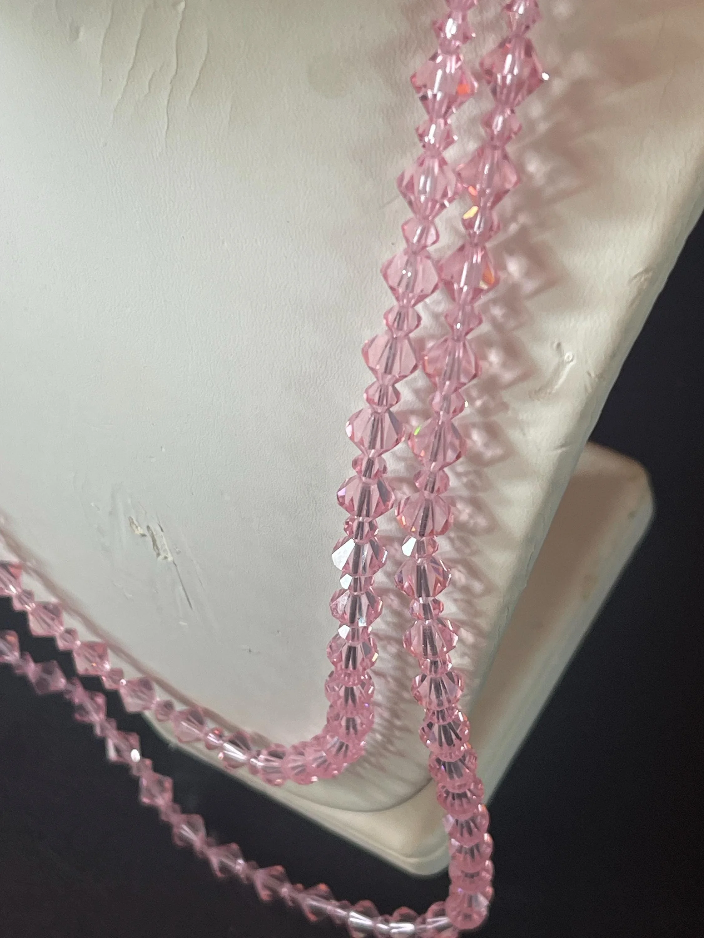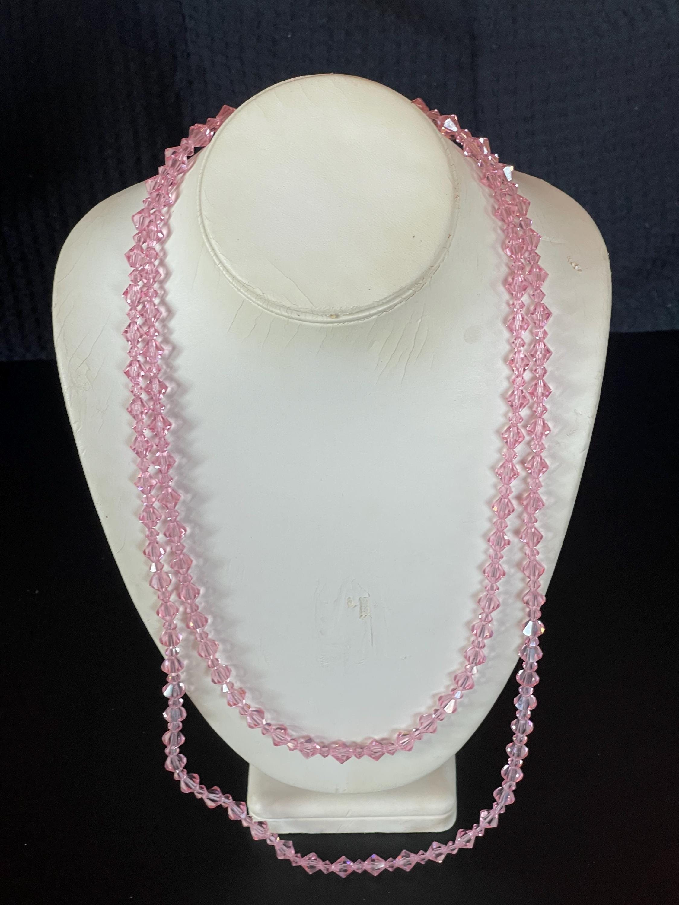 Elegant Vintage Pink Crystal Bead Necklace Duo with Earrings