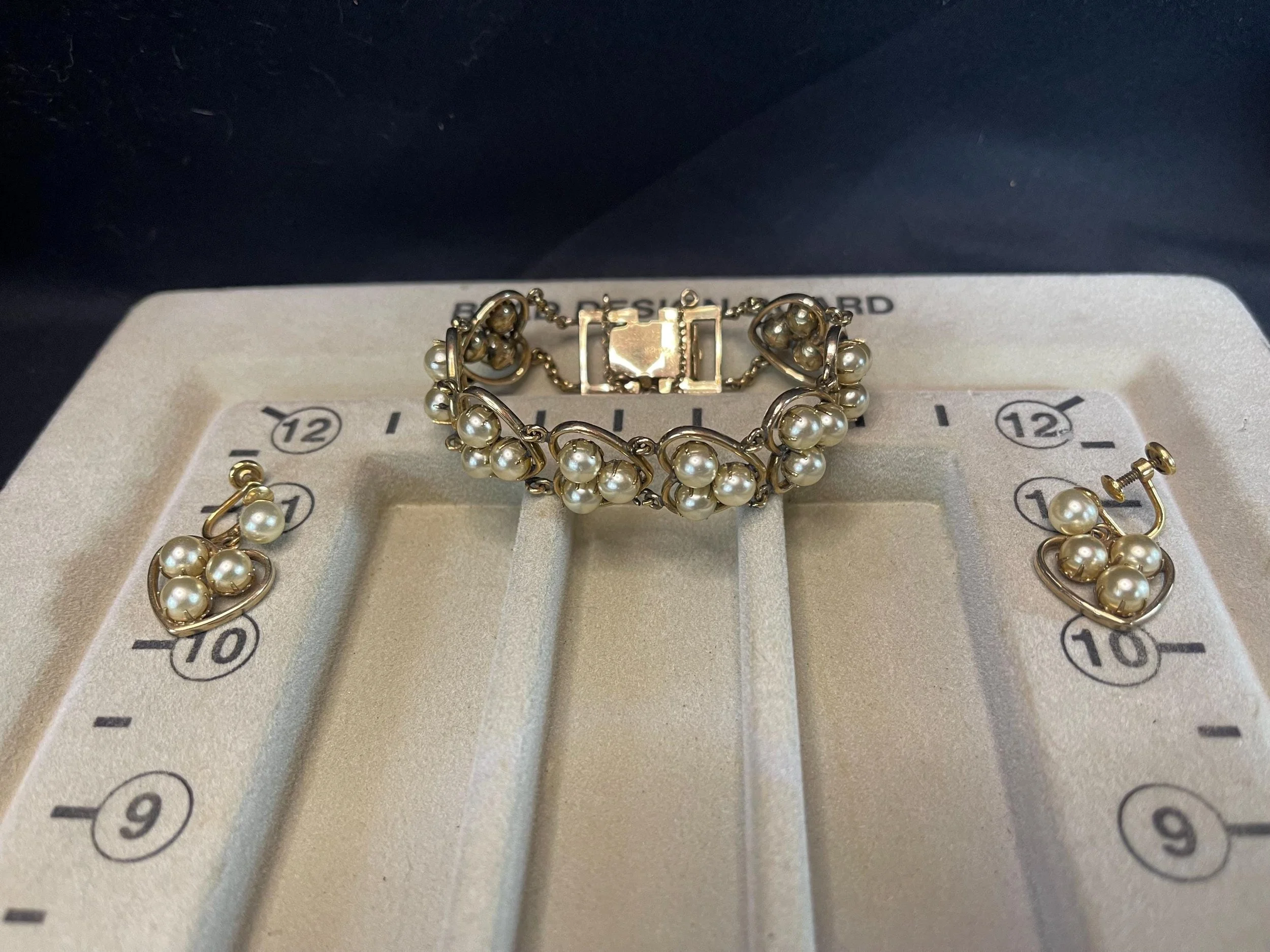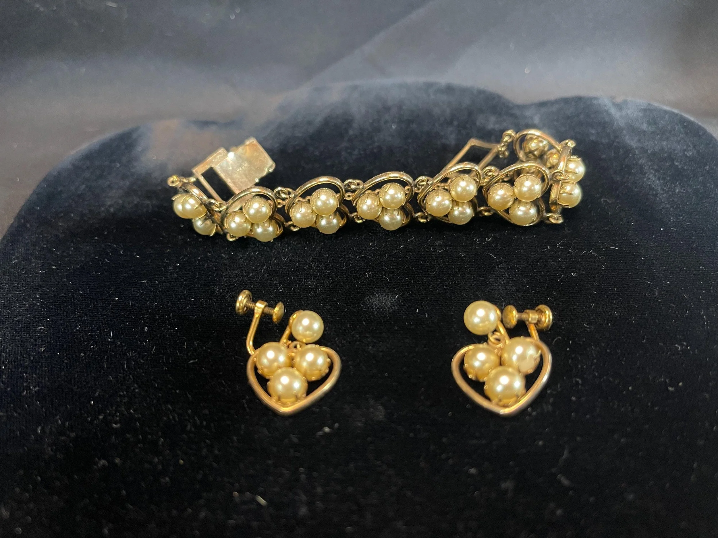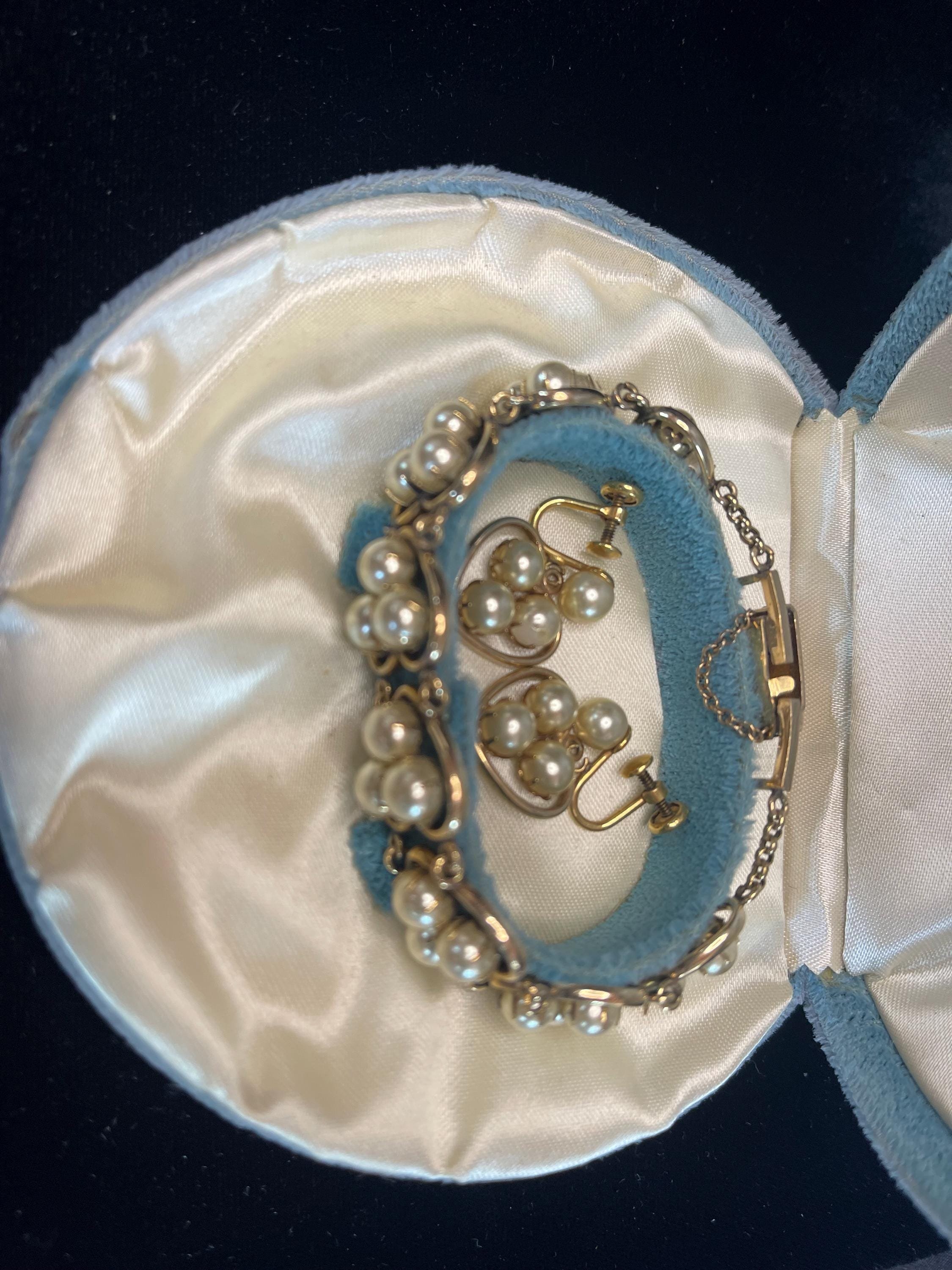 Vintage JMS Gold Filled Pearl Bracelet Earrings Set Mid-Century
