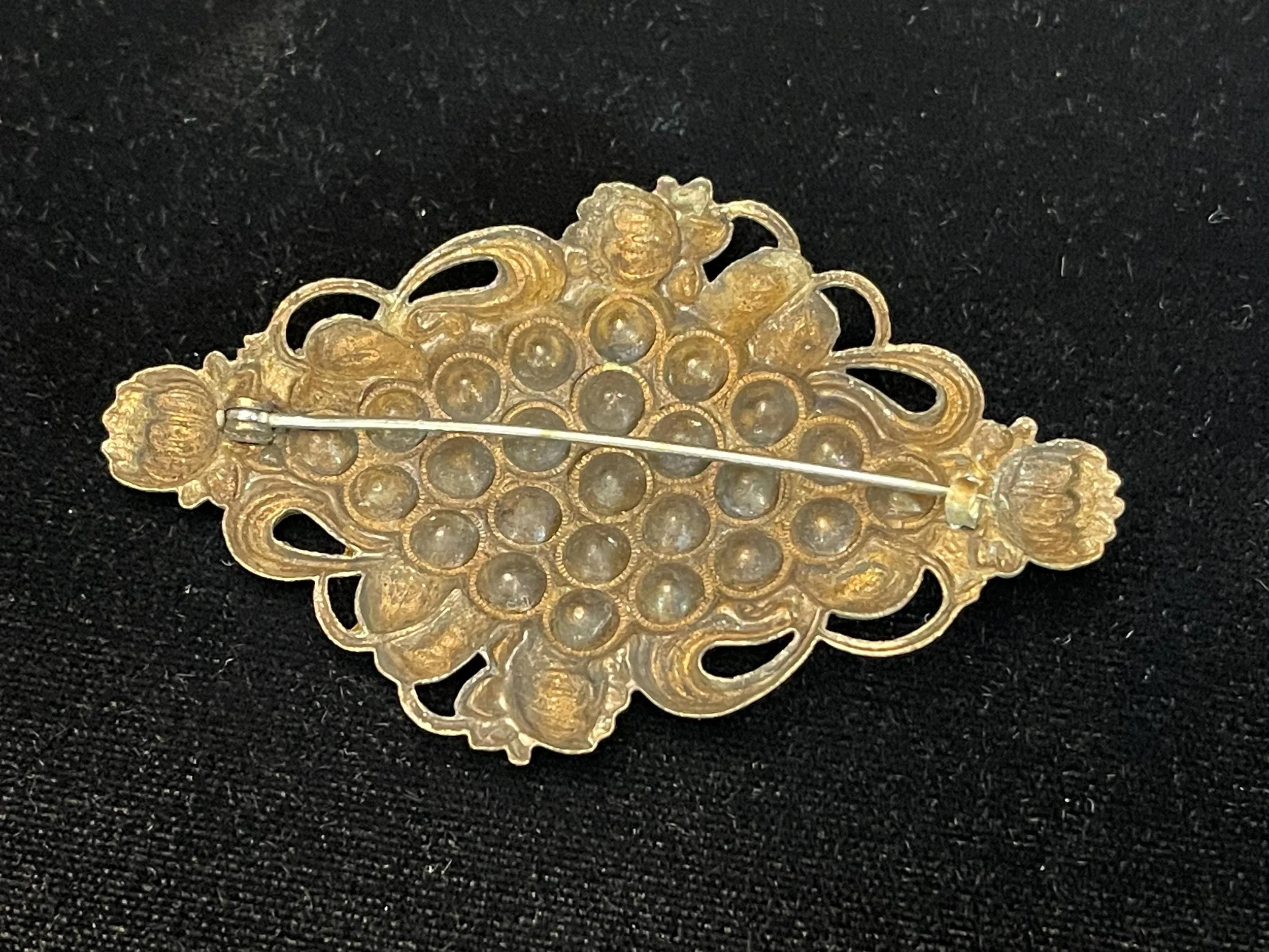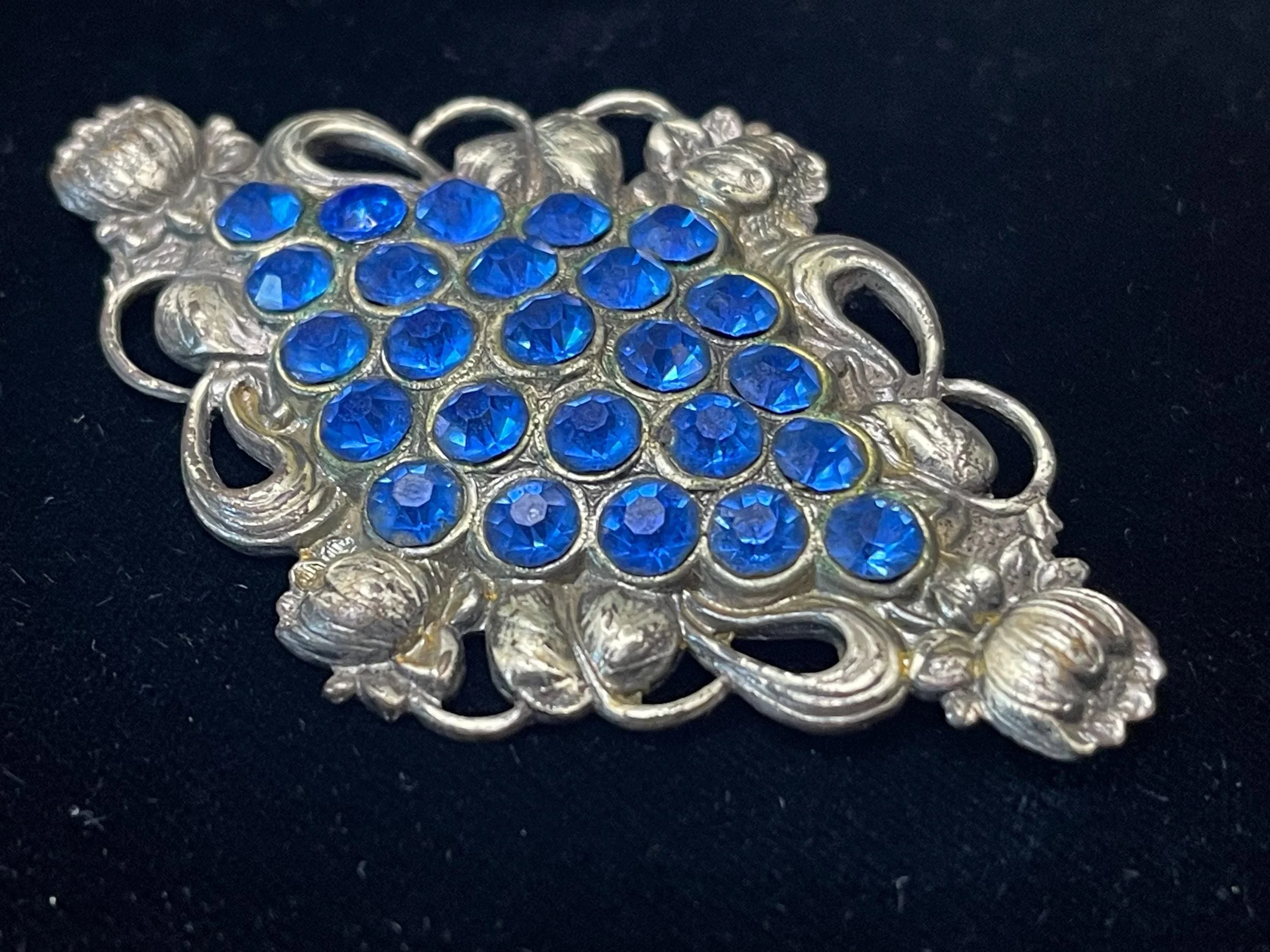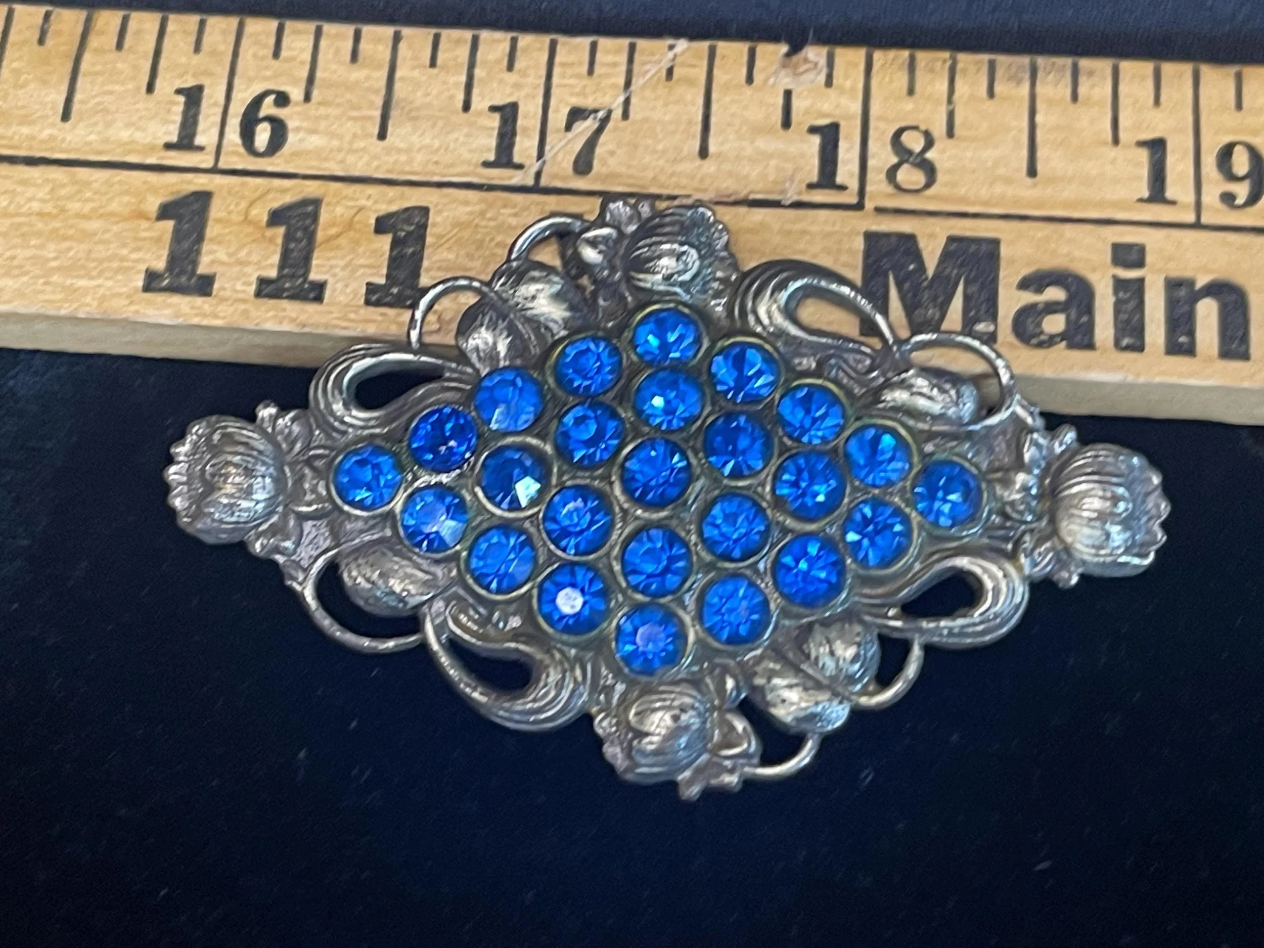 Vintage Nouveau Style to Deco Blue Rhinestone Brooch